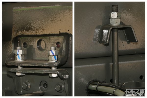 底盘与副梁的连接方式,使用U型锁以及马蹄锁相结合的方式,并且使用的是双螺母装配,使副梁与底盘更加贴合。