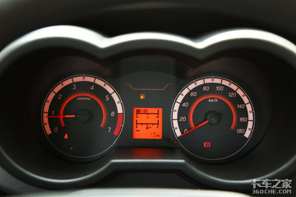 仪表盘的造型有些呆萌,内部设计简单,采用了桔黄色的背景光,看起来很温馨。中央单色液晶面条提供了油量和水温信息,读取十分方便。