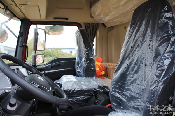 驾驶室采用的是四点气囊减震全悬浮的设计,可以缓解来自地面的颠簸,主驾驶座椅采用的也是气囊减震座椅,而且带有座椅高度、仰角、前后位置的调整,驾驶室内高为2米,为驾乘人员营造了非常宽裕的空间。