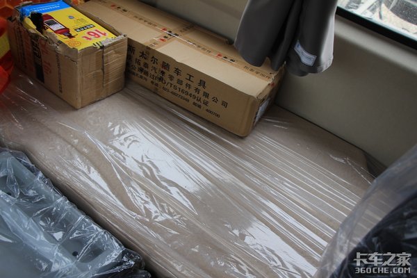 据现场实际测量,下卧铺最宽处为67cm,高顶双卧驾驶室的好处是一个人跑车的卡友也可以把需要用的东西放在上铺上,两个人跑车在等待装卸货时就可以同时休息,补充好精力再出发。