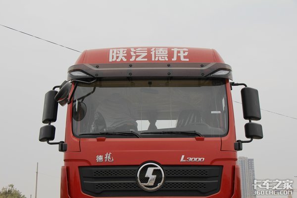 陕汽L3000基本延续了德龙系列重卡的经典外观设计,依然是非常熟悉的红黑配色,为了满足中长途绿通运输的需求,选用的是高顶双卧驾驶室,实拍的这款并没有配导流罩。