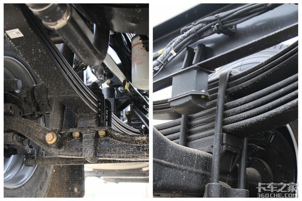 板簧方面,采用的是前3后4+3的少片簧设计,但是板簧采用的是等长加厚式设计,可以在降低车身自重的同时提高车辆的承载力。