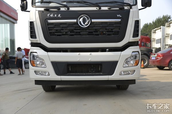 较为厚重地黑色塑料中网与整体浅色车身形成鲜明的对比,搭配两侧导流槽的黑白设计,具有较强的视觉冲击感。而粗壮的镀铬饰条和镀铬东风大车标为整个区域带来更高层次的豪华体验。