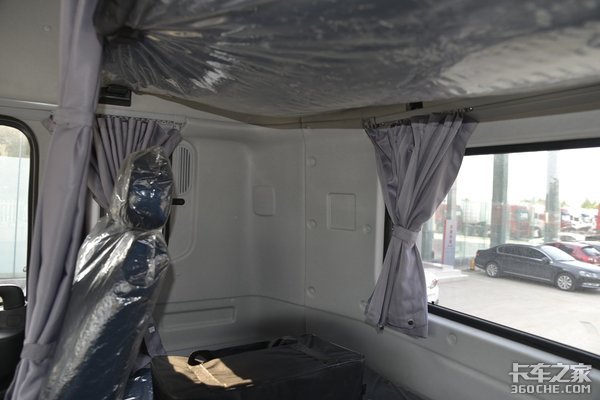 高顶设计的驾驶室为驾乘人员带来充足的纵向活动空间,驾驶室采用排半设计,准乘2人。气囊式座椅采用多向角度调节功能,为不同体型的驾驶员提供舒适的坐姿,在长途驾驶过程中能很大程度减缓驾驶员的疲劳感。