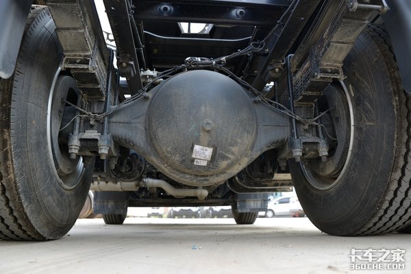 该车配备的是东风485的13T级后桥。目前东风天龙VL系列车型的后桥速比区间主要集中在3.4至3.9区间,这样可以让用户有更多的选择,以适应不同的运输场景。当然,具体总速比还是以实际车型为准,每一种不同的速比都有它适用的运输路线情况。
