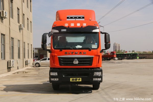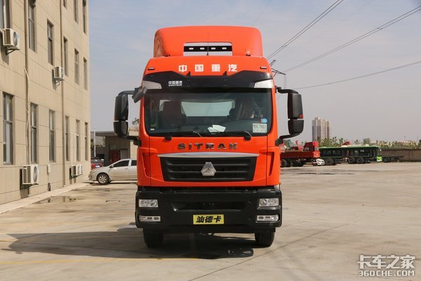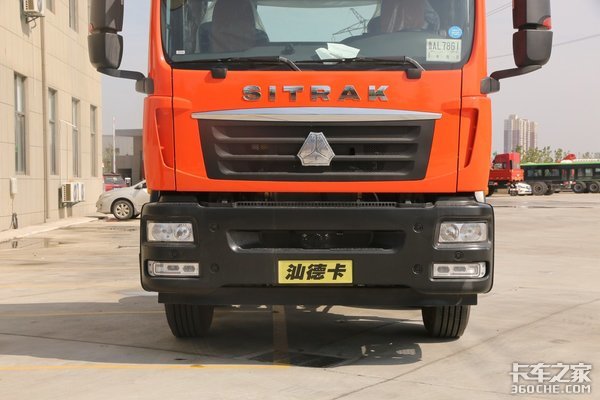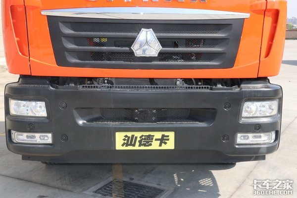 这款汕德卡G5采用独特的桔红色涂装,外观以红黑颜色搭配为主,延续了汕德卡家族化的驾驶室,整体沉稳大方。