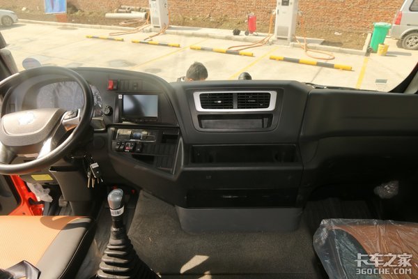 这款汕德卡G5采用近乎平地板的宽体高顶驾驶室,驾乘空间十分可观,车主可以在驾驶室内舒展自如,轻松从驾驶室左侧穿行到右侧。