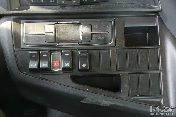 中控区域布置有MP5显示屏、自动空调、油箱加热、主副油箱切换开关等,MP5显示屏支持导航、收音机、音乐、视频、蓝牙、四路监控、WIFI等功能。