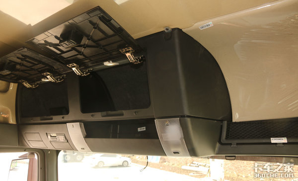 因为是高顶驾驶室,储物空间自然不用担心,车顶布置有多个储物格,方便车主随车携带各类日常用品。