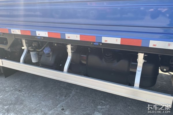 第三,底盘布局也做了大幅调整,油箱和尿素罐调整到一侧,更加的便于加注,与此同时,同侧布局还为另一侧预留了足够的改装和后续升级的空间。