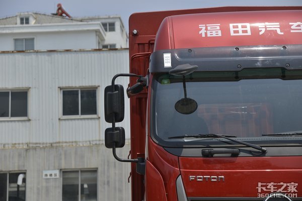 前脸采用福田经典的阶梯式中网搭配蜂窝式的进气孔,中间镶嵌福田钻石标志,中网外侧的哑光金属条造型硬朗,整体看起来层次分明。两侧配有导流槽,行车时能引导气流,减少泥水飞溅到前脸和车门上的情况。