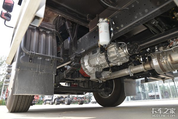 传动方面,匹配的是型号为法士特8JS85TE的8挡手动变速箱,最高挡为超速挡,速比为0.79。壳体材料采用铝合金,能大大减轻整车自重。