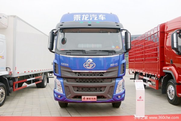 前脸采用“U”型设计,一条银色镀铬亮条连接哑光黑面板,视觉冲击感十分强烈。中网设计有大开口的网格,能够更好的进气,对发动机系统进行降温处理。“东风柳汽”、“乘龙H5”及“龙”型车标采用银色镀铬装饰,在阳光的照耀下闪闪发光,突显其高贵气质。