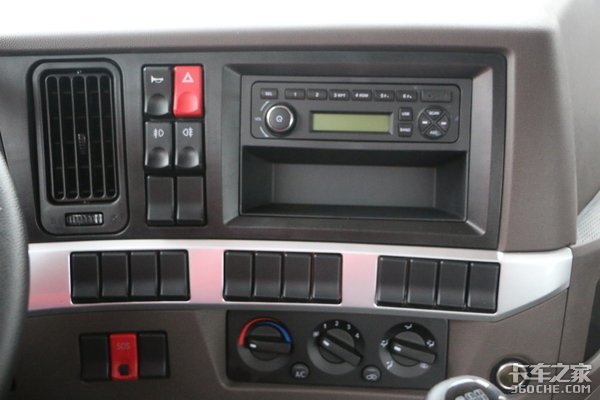 中控台采用的是环绕式设计,方向盘的右侧就布置着灯光、喇叭等控制按钮,收音机下方设计有储物格,方便票据、卡片等小物件的存放。多出一排空按钮区域,为选装预留了机会,下层则是带有自动恒温空调,能够给车上人员带来更好的行车体验。