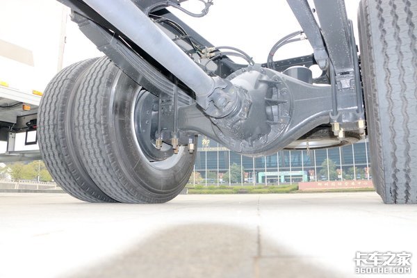 轮胎是装配295/80R22.5型号的成山牌轮胎,而且配置了铝合金轮圈,也是出于车辆轻量化的考虑。