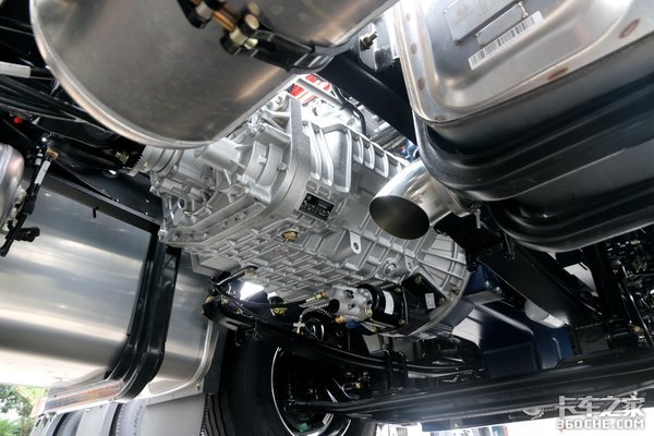 传动方面,匹配的是型号为法士特12JSDX240TA的手动变速箱,前进挡为12个,最高挡为超速挡,速比为0.78。这款变速箱壳体采用铝合金材料,大大降低了整车自重;副箱采用斜齿设计,齿合平稳噪声更低,能承受更大扭矩的爆发。