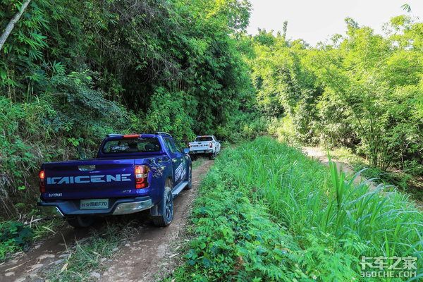 此次试驾就是当地茶农上山采茶所走的路,可以真实反映长安凯程F70的越野通过性能。这一路上先后经历了多个陡坡和接近180°的连续急转弯,期间还有馒头包、V字沟等特殊路况,再加上泥泞湿滑的路面,对于长安凯程F70是不小的考验。