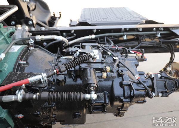 传动方面,匹配的是型号为中国重汽HW90510C的10挡手动变速箱,最高挡为超速挡,速比为0.78。