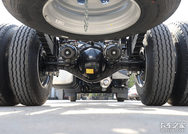 车桥及悬架方面,整车采用9吨级的后桥,后桥速比为4.333。后悬架采用9+7的多片簧设计,保证了不错的承载能力。