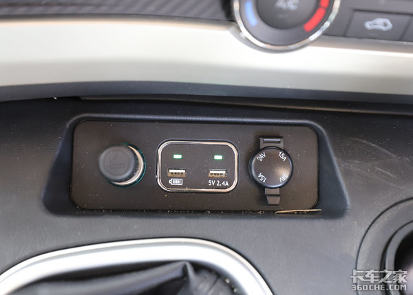 中控台下方,布置有点烟器、USB充电口和24V电源等。