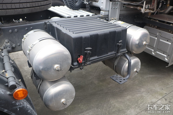 这辆乘龙H7配备1350升气瓶,该气瓶内胆设计采用两级安全阀,性能稳定、安全可靠。相较于市面常见的950升、1000升气瓶来说,1350升超大容量储气罐在续航里程上更有优势,能够满足更长距离的物流运输,同时还减少了去加气站的时间,提升车辆效率,不再有续航焦虑。