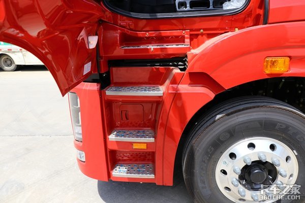 驾驶室配有四级登车踏板,上下车非常方便。踏板表面采用镂空设计,能有效减少驾驶员上车时将泥土带入车内的情况。