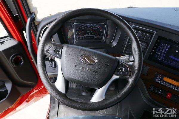 驾驶室配备四辐式多功能方向盘,集成有液晶仪表和多媒体控制按键。