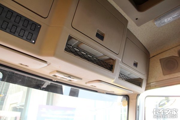 驾驶室顶部则布置着3个大容积储物格和2个小的储物槽,能轻松容纳下各种日常生活用品。