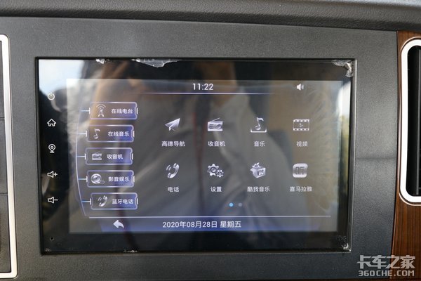 中控大屏支持触屏及收音机、音乐、视频、导航、蓝牙电话等功能。