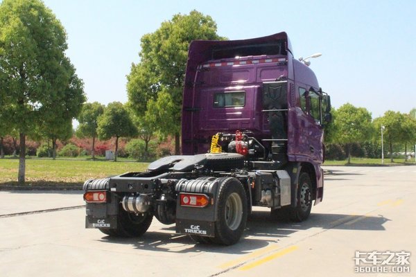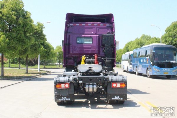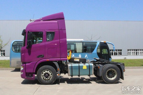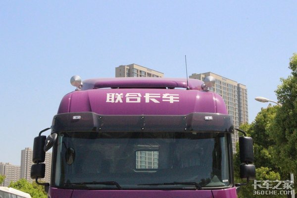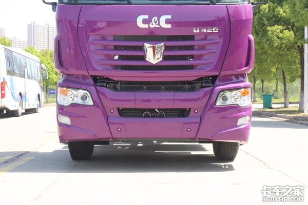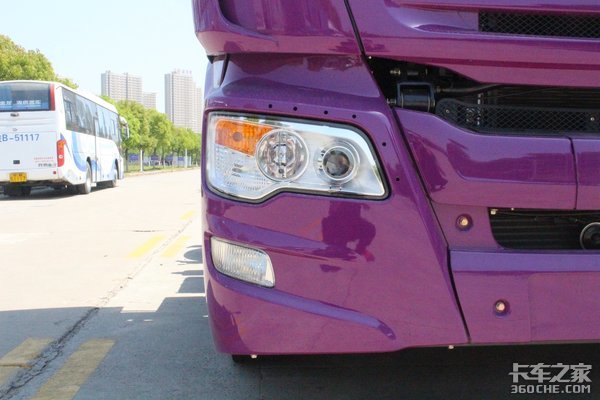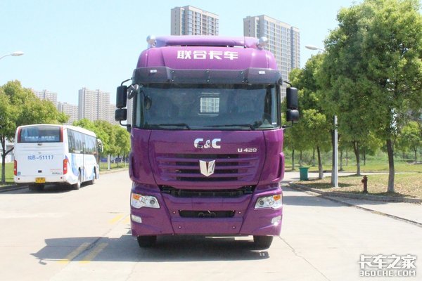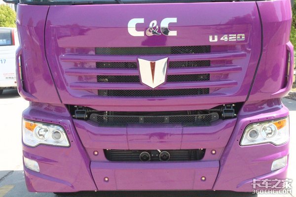 外观方面,这款U420继承了联合U系牵引车的家族化前脸,采用国内罕见的紫色涂装,寓意“紫气东来”,整体显得骚气妩媚、妖娆多姿。这种突如其来的骚,着实令人眼前一亮。