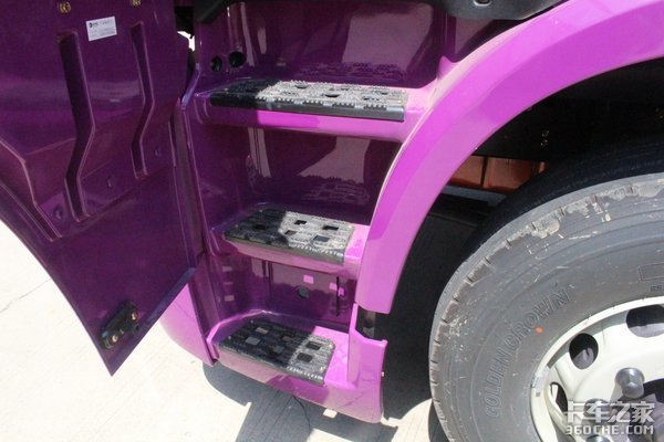 驾驶室配有三级蹬车踏板,踏板采用镂空设计,能减少驾驶员上车时将泥土带入车内的情况。