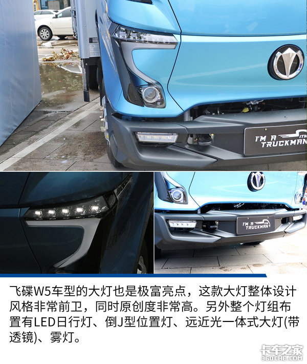 外观点评:飞碟W5的外观造型设计非常前卫、时尚,在当下的这些轻卡车型设计中,它无疑是走在前列的,但这也会造成卡友面对它时会出现两个极端,一是喜欢的不得了,另一是非常不看好它