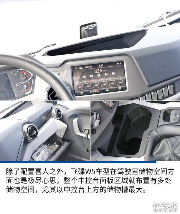 内饰点评:相比于外观设计,飞碟W5车型的内饰设计可能会更容易让卡友们接受并喜爱,但个人认为方向盘设计的确是拖了后腿的,不过好在它还有那么多丰富、高端的科技配置,同时在储物空间和卡友关爱方面,飞碟W5车型也是拿出了诚意。