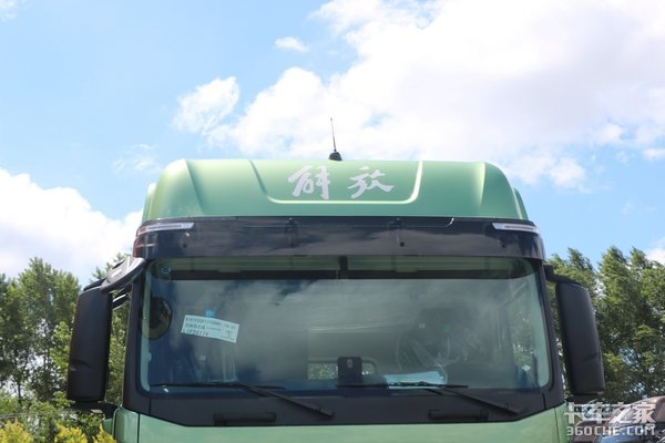 前部车顶带有“毛体”解放车标,大尺寸遮阳罩,减少强光摄入,提高驾驶舒适性。在遮阳罩两侧还配备了示廓灯,提升车辆行驶安全。