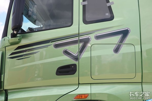 车身侧面能够看到,富贵绿涂装的解放J7使用了全新的车身拉花,将原有的标志性鹰头标换成J7的艺术字体,看上去更为年轻。