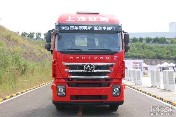 根据发动机转速、变速箱挡位速比、后桥速比和轮胎型号,通过卡车之家车速计算器可得出,这款车在1000转的经济转速时,变速箱在超速挡的车速即可达到82km/h,在直接挡的车速为64km/h,从整套动力总成可看出这款车能够满足用户重去空回的特殊工况。