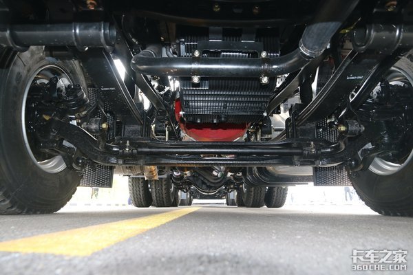 车桥方面,整车采用6.5T的前桥和HY469后桥,后桥速比为3.083。悬架方面,整车采用前2后4的少片簧设计,有利于整车轻量化。