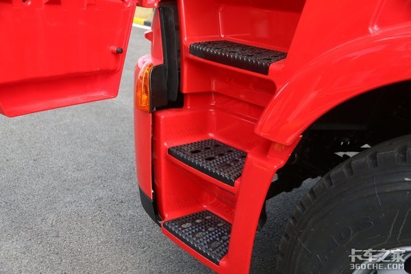 驾驶室设计有三级蹬车踏板。踏板经过防滑处理,可避免驾驶员上下车时滑倒或摔伤。踏板采用镂空设计,能减少驾驶员上车时将泥土带入车内的情况。