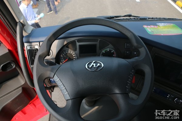 这款车采用高顶驾驶室,驾驶室顶部安装有遮阳罩,可减少阳光直射对驾驶员视线的影响。遮阳罩两侧的示廓灯,可在夜晚行车时保障安全。