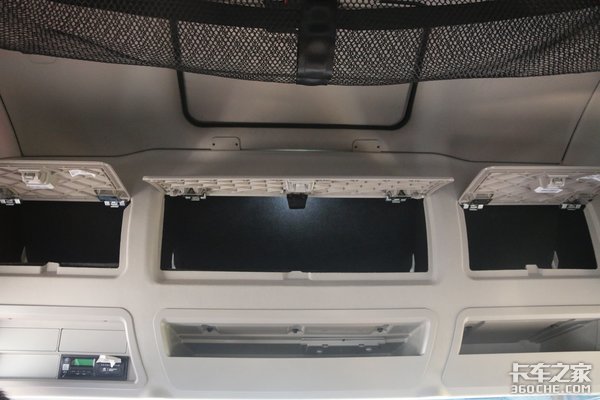 驾驶室内采用平地板设计,活动空间和驾乘空间都显得比较宽敞。驾驶员在车内直立行走也不会感到局促或压抑,主副驾驶员来回换乘也比较方便。双卧铺尺寸宽绰,以多数人的体形来说宽度足够。