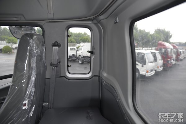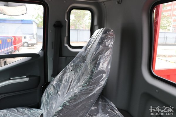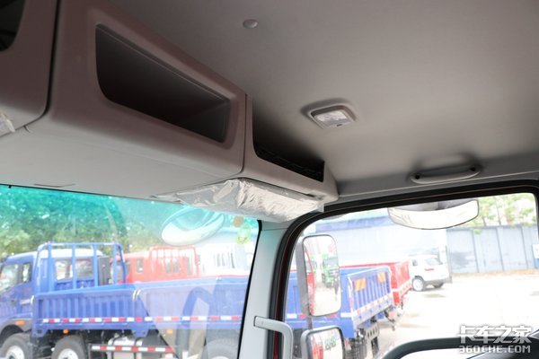 同样配备气囊式减震座椅,并且支持多向角度的调节功能,配合较厚实的坐垫填充海绵,充分保证了驾驶员的乘坐舒适度。排半单卧的设计让整个驾驶室有非常充裕的头部空间,准乘3人。并且在车顶前方设置了两个封闭式的可开启储物箱,使用便利。