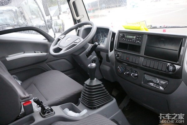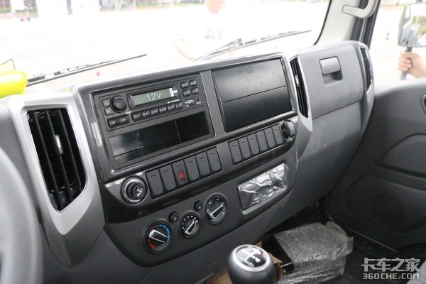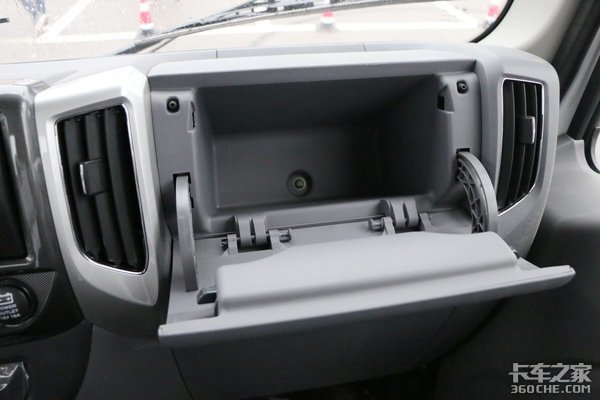 中控区域配备了一个可扩展的多媒体机头、空调控制面板,以及两个12V电源接口,对驾驶员和乘客为手机充电的需求还是照顾到位了的。另外还设置了两个储物盒,方便放手机、配送票据等物品。模块化的功能区设计很人性化,如果后期卡友需要加装液晶屏幕,增加娱乐功能也是挺方便的。