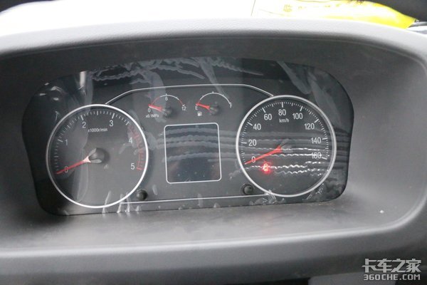 双筒式仪表盘采用黑色背景和红色指针的搭配,具有较高的辨识度。上边是气罐压力和油量指针,加上中央行车电脑的显示屏,虽然整体趋于使用设计,但视觉感受还是不错的。