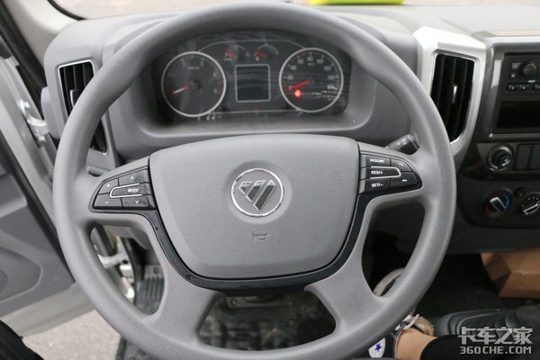 奥铃速运的驾驶室整体采用上浅下深的颜色搭配,让整个空间看起来没有那么单调。中控台的整体设计是轻卡级别惯用的分层布局,能在一定程度上形成层次感,但在舒适感上还稍有欠缺。另外,该车配备电动后视镜、后视镜加热、倒车雷达以及遥控钥匙等实用配置。