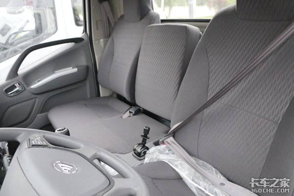 奥铃速运采用单排布局,准乘3人。深灰色的织物面料加上花纹搭配,具有不错的耐脏能力。并且坐垫内海绵的填充物足够厚,能够满足短途运输对屁股的照顾。
