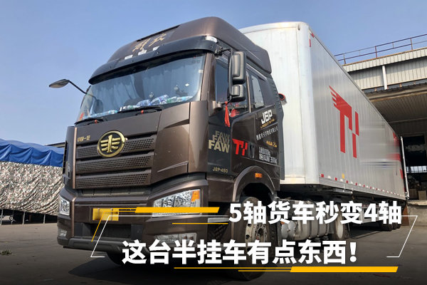 不过针对车货总重不超过40吨的专线快运行业来讲,容易遇到车货总重不稳定的情况,选择5轴车型更加合适。不过承运企业为了降本增效,除了选择4x2牵引车头外,还在挂车配置方面下足功夫,接下来介绍的这款运输配置“五轴秒变四轴”绝对不是吹嘘。