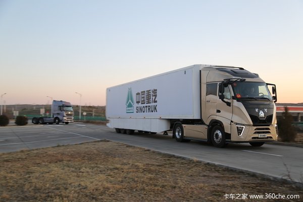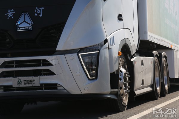 在前面我们说过,黄河重卡的电气化程度相对于之前的车型有了较大的提升,处于国产卡车领先水平,这也是重汽的技术优势。先说一下我今天体验的车型,490马力的4X2牵引车加上3轴挂车,装配的是重汽自主研发的AMT,以及标配的电子手刹、车道偏离预警、防疲劳监测等等。