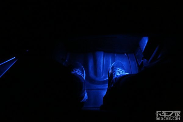 另外就是一些驾驶室内的小细节,比如副驾驶脚下的氛围灯。当大灯开启以后,副驾驶脚下的氛围灯随之启动,蓝色的灯光营造出一个比较温馨的场景。当我们晚间驾车到高速上,听着音乐,驾驶室有蓝色的氛围灯,整个人都感觉没那么累了。