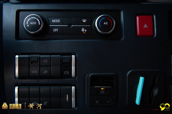 同样的大灯“AUTO”模式,当进入隧道或者是天黑的时候,大灯就会自动开启,但是远近光灯需要驾驶员自己调节。值得一提的时候,黄河重卡全系标配LED光源,并且配有大灯负载调节系统。理论上来说,自己加装装饰灯或者是照明灯光,都可以通过灯光负载调节系统来调节,不用担心烧电线或者是灯泡的情况。