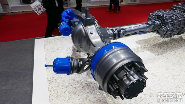 根据现场展示,这套动力系统可匹配包括6x4牵引车、8x4载货车在内的多种车型。后桥制动系统也可以选择鼓刹或盘刹系统。